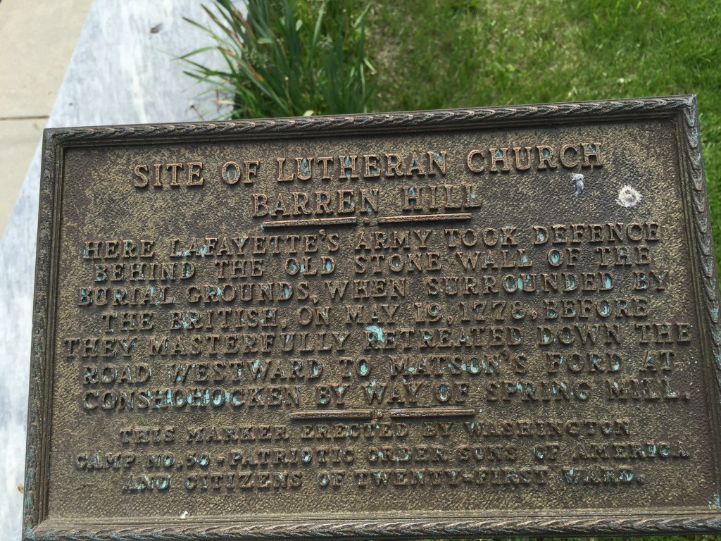 On this day in 1778, some 2000 soldiers, including some 50 Oneida Indians, engaged in the Battle of Barren Hill, on and around the grounds of St. Peter’s Lutheran Church in Lafayette Hill, Plymouth Whitemarsh, PA. This battle is one of the climactic final chapters in my novel, Becoming Valley Forge, and a climactic event of and the only true battle fought during the Valley Forge encampment.
