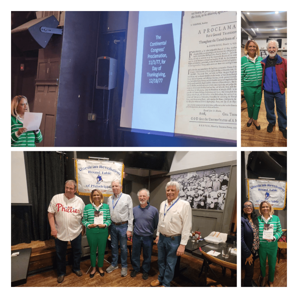 I also wanted to share with you some photos from my April 1 talk before the American Revolution Roundtable of Philadelphia (https://arrtop.org). The just about standing room only group of about 60 people couldn’t have been more welcoming or interested. A good time was had by all—especially me!