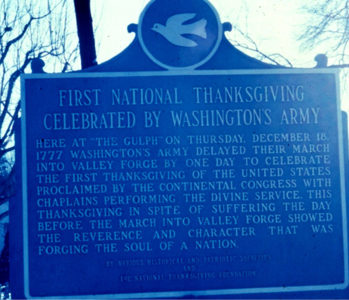 Historical marker in Gulph Mills recognizing it as the site of the nation’s First Thanksgiving.